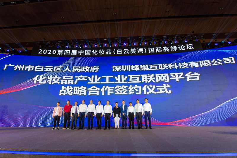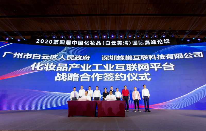 大洋网讯 9月1日,2020中国化妆品(白云美湾)国际高峰论坛在白云国际会议中心举行,吸引了来自国内外化妆品全产业链企业参加。广州市白云区人民政府与深圳蜂巢互联科技有限公司(以下简称“蜂巢互联”)签订战略合作协议,双方将共同创建国内首个化妆品产业工业互联网平台。此次签约,标志着我区信息化与传统优势产业深度融合、先行先试,将有力推动我区化妆品产业数字化转型升级及高质量发展,共同打造“千亿级白云美业大湾区”。